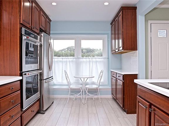 Renovated coveted courtyard condo on Wilton side of Fawn Ridge! Nothing to do but move into this beautiful 2 bedroom, 2 1/2 bath unit with a garage and carport. Fully updated open concept kitchen with stainless steel appliances and new floors through out the entire unit. Enjoy your morning coffee in the breakfast nook with courtyard views. Open Living/Dining room area with sliders to your private patio where you can BBQ and host guests. Enjoy your living room fireplace on chilly fall and winter nights. Open stairs lead to your master suite complete with a walk-in closet and recently renovated full bathroom, as well as the second bedroom which has it's own private full bathroom. The finished lower level can be used as a bonus room or another bedroom and is complete with a large storage room and laundry. Beautifully landscaped grounds with a swimming pool and tennis courts. Walk to stores, restaurants, gym, doctors offices, etc . 5 minutes to I-95, and Route 7 connector/Merritt Parkway. Close to to train lines! Wilton is known for its award winning public schools.