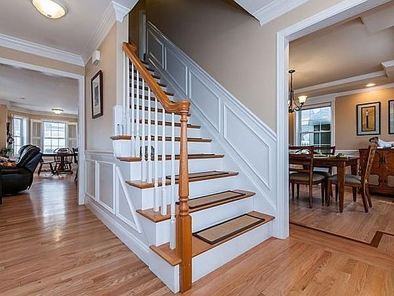 Gorgeous 7 year young meticulously cared for Contemporary Colonial in desirable Cedarwood community. This home boasts an open floor plan with gleaming hardwood floors and lots of natural sunlight with high end crown molding. You will love the gourmet granite kitchen with stainless appliances, 6 burner stove, full kitchen island and a breakfast atrium! The kitchen flows nicely into the gas fireplaced living room with built in cabinets equipped with surround sound. Sliders that lead to the beautifully landscaped backyard, oversized deck, stone patio small water fall and a hot tub! Finishing the 1st floor is the formal dining room with tray ceiling and chair rail. The family room is so relaxing as you watch the fish in your built in fish tank! 3 large bedrooms on the 2nd floor with a master bedroom and private master bath with Jacuzzi tub. You will want to spend plenty of time in the basement with electric fireplace, wet bar and built in seats from the old Wal-lex roller skating rink!