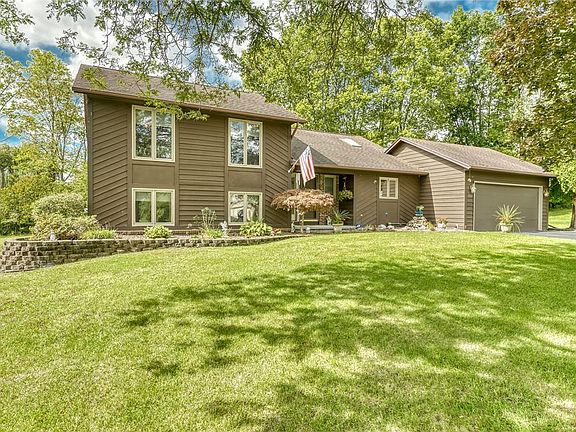 Lovely CUSTOM Split-Level maintained to PERFECTION! Beautiful CUL-DE-SAC located just a stone throw away from Chili Center, Recreation Center, Wegmans, and all your amenities! Enter the large Foyer area that opens to the Cathedral LIVING ROOM, Wood burning fireplace, and FORMAL DINING! The bright Kitchen offers RICH OAK CABINETRY, Newly installed COUNTERTOPS, ISLAND, BACKSPLASH, and kitchen appliances STAY! Walk right through the DOUBLE FRENCH DOOR to an AMAZING THREE SEASON SUNROOM! Fantastic entertaining space or relax in privacy with views of the tree lined wooded lot. Check out the large FAMILY ROOM plus OFFICE, DEN, or FORTH BEDROOM! The BASEMENT is partially FINISHED with a separate workshop or great storage! MULTI STAGE HIGH EFFICIENCY CARRIER FURNACE WITH CENTRAL AIR! Hot Water Tank 2022. The home is completely encapsulated with ADDITIONAL insulated sheathing for better energy saving performance! Take a look today! This one owner's home won't disappoint! Delayed Negotiations September 27th, 2022@ 4:00PM