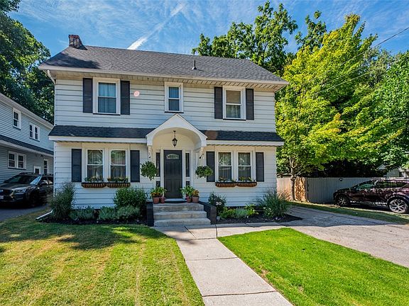 Charming and move-in ready 3 bed, 1.5 bath Colonial in Greece! Inside you’ll find a welcoming entryway, spacious living room with wood-burning fireplace and leaded glass windows, plus a bonus room perfect for an office or playroom. The updated kitchen features butcher block counters, white cabinetry, and breakfast bar that opens to the dining area. Upstairs offers three bedrooms, a stylish full bath, and walk-up attic with new vent fan—ideal for future finishing. Recent updates include roof and furnace (2022), central air (2023), and hot water tank (2018). Hardwood and laminate floors throughout add warmth and character. Enjoy outdoor living with a partially fenced yard, patio, and detached garage. Conveniently located near schools, shopping, and public transportation! Delayed Negotiations until August 26, 2025 at 2pm. Open House Saturday, August 23 11am-12:30pm