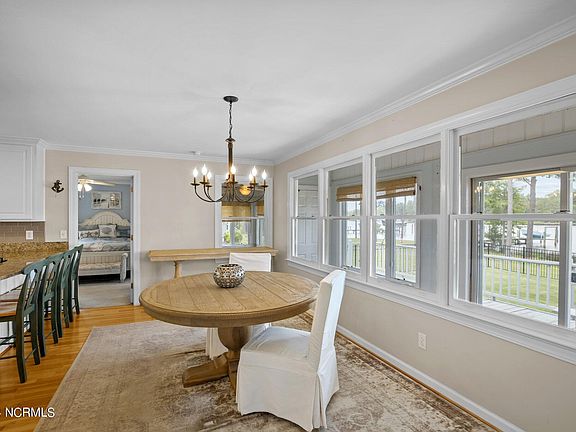 Enjoy mornings on the spacious wraparound porch overlooking deep Browns Creek. The 80-foot dock, with three slips, water, electricity, and a fish cleaning station, offers direct access to Broad Creek, the Neuse River, and the ICW.