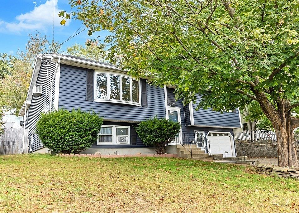 You'll first notice the exterior of the property has been completely updated. New roof, vinyl siding & fencing were all replaced in 2021! Inside, enjoy relaxing in front of the bay window in the living room. The kitchen features stainless steel appliances & white cabinets! The stove & fans/lights are smart appliances that can be controlled on your phone. The large family room with vaulted ceilings & natural light is the perfect place to gather with your family. Brand new carpets were just installed throughout the home! Two good-sized bedrooms & a full bathroom complete the upper level. In the lower level, there are another 2bedrooms and a spacious 3rd room currently used as a primary bedroom. A second bathroom with laundry hookups is available downstairs. Enjoy having direct access to your garage! The fully fenced backyard has a fantastic deck, an above ground pool & a shed for all your outdoor needs. Solar panels were installed in 2022 to help reduce your electricity bills.