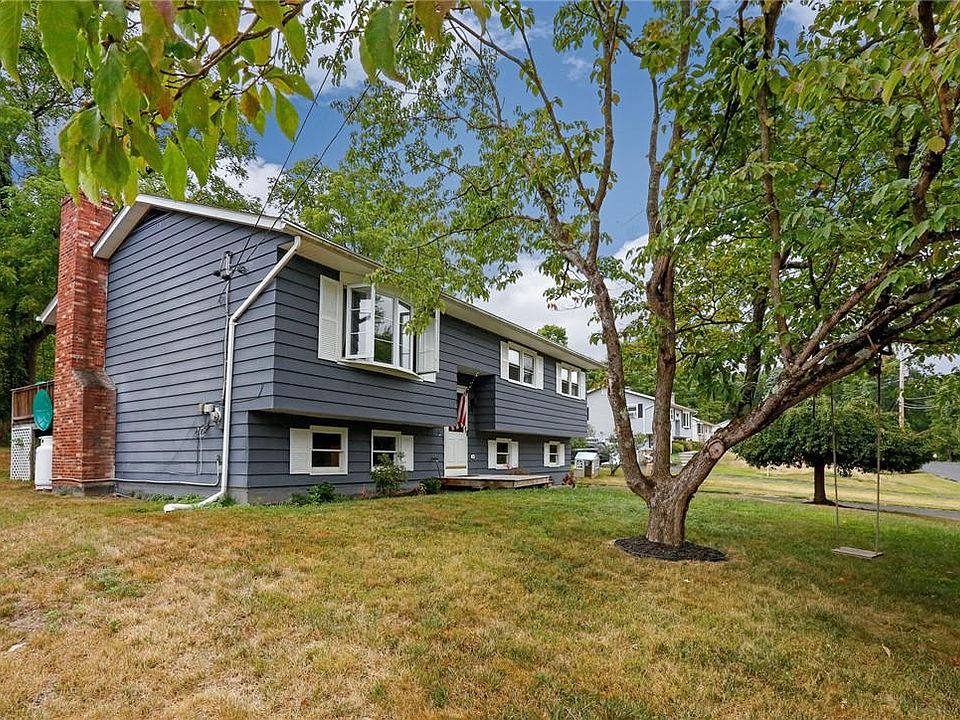 Three bedroom, one and half bath situated on an oversized lot. Many upgrades including quartz countertops, stainless appliances, baths and water heater all within the last four years. Hardwood and tiled floors throughout. Finished basement features bluestone fireplace. Large deck, garage and paved driveway. Plenty of room to relax and play. Additional Information: HeatingFuel:Oil Above Ground,ParkingFeatures:1 Car Attached,