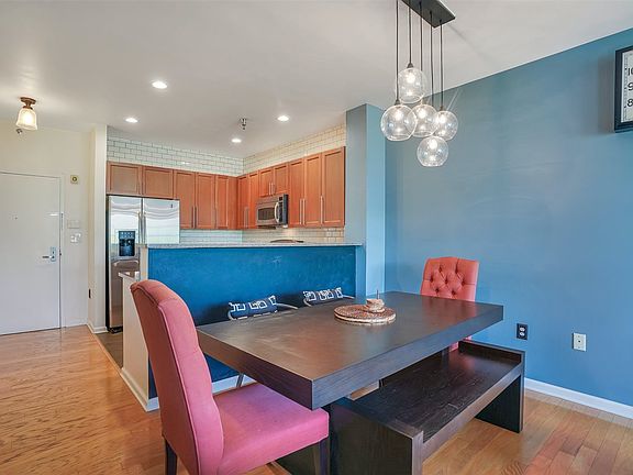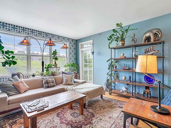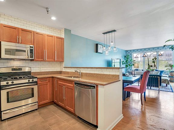 Port Liberte Condo 3-- On the Park! Southern facing spacious and bright two bedroom, two bath condo boasts 1171 sf of open concept living and all the modern finishes and conveniences you deserve. Social area with wall of windows and wood floors and opens to generous sized balcony overlooking courtyard. Gourmet kitchen features granite counters, wood toned cherry cabinetry with nickel pulls, stainless steel appliances and gas cooking. Oversized master suite will be your haven from the hectic and offers a large walk in closet and a spa like warm toned marble bath featuring wood dual vanity with stone top, extra deep soaking tub, separate frameless glass shower and linen closet. Generous sized second bedroom with double closet. Other features are zoned heat and air conditioning, washer/dryer in unit, security alarm, included garage parking and full Port Liberte amenity package including peace of mind 24 hour gatehouse security, professional style fitness facility, two outdoor pools, tennis courts, basketball court, outdoor play area, fenced dog run, free guest parking, designated green spaces and serene waterfront promenades. Maintenance includes hot water, cooking gas, garage parking and use of Port Liberte amenities. Easy commute via onsite high speed ferry to NYC or Monday thru Saturday Shuttle to Grove St PATH. Easy access to all major highways, Holland Tunnel and just a few short minutes to Newark Liberty Airport. Come make the Port Liberte resort lifestyle your lifestyle!