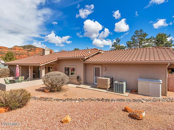 Superb home in Oak Shadows! Boasting 3 bedrooms, 2 baths, split floorplan, privacy and views... Newer LVP floors in livingroom, dining, and bedrooms, no carpet. Kitchen has upgraded cabinets, granite counters, large pantry and SS appliances. Living room has built-in entertainment center and natural gas fireplace. Main bedroom has spacious bath with separate tub and shower plus a well-appointed walk-in closet. In addition, home has both central A/C and evaporative cooling. Laundry room with sink, closet and cabinets. Oversized garage with attic storage. Lovely backyard with mature landscaping, grass area, and courtyard to soak up the Red Rock vistas. Low maint exterior located on a low traffic street. Close to trails too !! Furniture is also available for sale for turn key option as well.