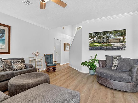 Short Sale. Opportunity!!! Wake up each morning to serene lake views and the calming sounds of nature at 30 Front Street. Just a short 5-minute stroll brings you to Waterfront Park along the Intracoastal Waterway, where you can walk, jog, or bike while watching boats drift by. For those who love the outdoors, this location is hard to beat. Step inside and you’ll be welcomed by a striking architectural staircase and a formal dining room. The family room, casual dining area, and kitchen are all positioned on the lake side, offering peaceful views from every angle. The primary suite is conveniently located on the first floor, keeping your main living spaces within easy reach. Upstairs, you’ll find three additional bedrooms plus a loft—perfect for a second living area, home office, or private retreat for family and guests. At the heart of this home is the screened lanai, designed for relaxation and entertaining. Enjoy a resurfaced (2022) 30-foot pool, ideal for swimming laps, along with a convenient pool bath to keep the indoors dry. The kitchen and bathrooms feature elegant quartz countertops, while major updates bring peace of mind: roof (2020), HVAC (2022). Living here means more than just a home—it’s a resort-style lifestyle. Within your gated community, you’ll enjoy access to a luxury clubhouse, two pools, a state-of-the-art fitness center, tennis and pickleball courts, walking trails, playgrounds, and on-site restaurants. Don’t miss this opportunity—make your offer today and make 30 Front Street your new home!
