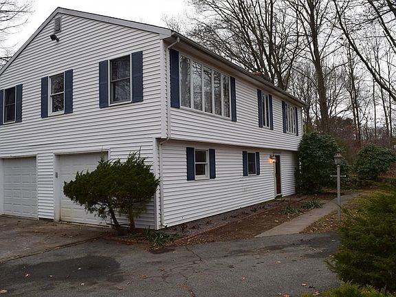 Looking for peace and tranquility to come home to? Look no further. This Contemporary Split Level home offers its own private sanctuary while being a commuter's dream. The picturesque driveway will bring you out to your circle drive & the tranquil 2.37 acre lot overlooking conservation land. The sundrenched Great Room will greet you as you come up the stairs with its amazing Open Floor Plan, a big kitchen with cabinets galore, huge center island, Gorgeous Wood Cathedral Ceiling & Gleaming Hardwood Floors. This home has been designed to be both an entertainer's dream & also a private refuge. Also on the main level you will find a full bath with laundry, bedroom & huge master with its own dressing area & full master bath. Bonus, beautiful picture window looks out over the tranquil woodline. The 3rd bedroom in the lower level is beautifully done w/ Wainscoating & newer carpet & paint. Some cosmetic updating could be done but well worth it for the seclusion yet convenience of urban living.