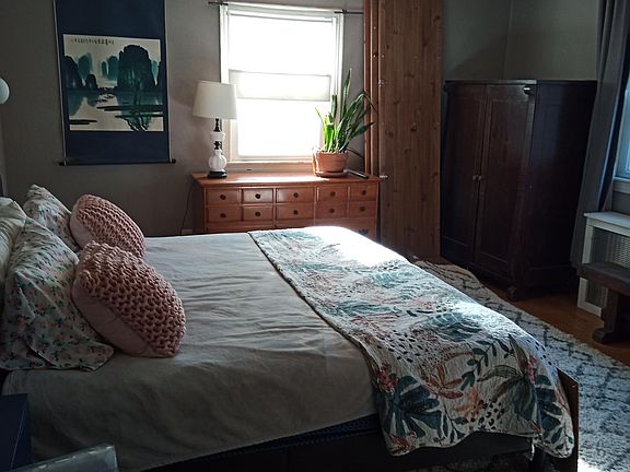 Large Main bedroom furnished with King bed, dresser, armoire, desk, TV and private EN suite bathroom in 3 BR end unit row house! Lots of indoor and outdoor space and a quick walk to red/green lines at Fort Totten. Grocery store and restaurants within walking distance or take a bike or bus to nearby shopping and dining! Available May 1. No smoking, partying or drama.. Striving for a clean, relaxing home atmosphere. Current housemates are male? 1 grad student and one WFH professional. 3 month lease to start with potential for extension. Listed rent is for one occupant. A couple will be $1500. Utilities are included.