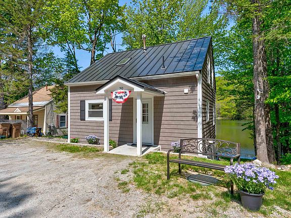 Private waterfront access in the Sunapee Hills Association of the Chalk Pond Community. Truly turn key, fully furnished, and move in ready. Upgrades include a metal roof with two skylights, gutters with leaf cover and gutters routed under ground away from the house for optimal drainage. Exterior vinyl shake siding for easy maintenance. Marvin windows, bamboo flooring, and high efficiency tankless hot water unit. Complete kitchen renovation with updated appliances, recess lighting, farmers sink, and Quartz counter top. Ship lapped walls throughout for a cabin feel with added insulation. Renovated bathroom with additional storage behind the shower. Entry bench in mudroom for ease of shoe and jacket storage. Upstairs, recess lighting added to every room. Newer Trex Deck with custom sectional outdoor couch. Rebuilt crushed stone raised area for fire pit. Outdoor heat lamp fired by propane gas. Added steps to back of property with accent lights and incorporated crushed rock for drainage. Two single person kayak and seasonal dock. High speed internet wired. Complete surge protector added to complete new electric panel. Nest thermostat, perfect for heating up the home in winter months before a long ski weekend. Ring security camera on the back patio. No detail has been missed. Perfect for the weekend getaway and escape from urban living. 2 bedroom septic. This home is an AirB&B and has active bookings that can easily be taken over!! year round rentals with skiing and water access.