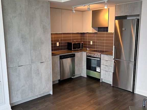 Beautiful and spacious Two Bedroom, Two Bathroom, Luxury Condo With a functional open concept layout. Approx. 782 sq ft + Large open 199 Sq Ft Balcony With Panoramic View Of The City. 9 Ft Ceiling And Floor To Ceilings Windows. Stainless steel kitchen appliances/ensuite laundry/one parking. Amenities Include Gym, Concierge, Party Room, Patio/BBQ area, etc.