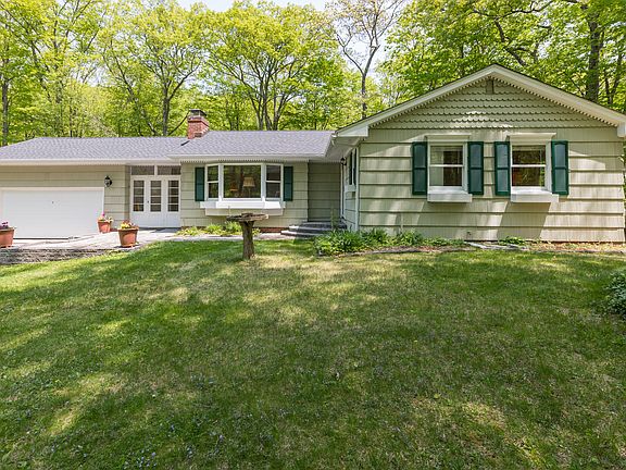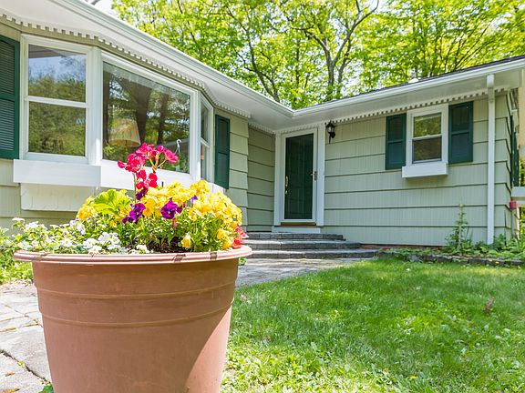 Pristine 3 bedroom, 2 full bath Ranch on 1.98 beautiful and scenic acres. Private cul-de-sac setting that offers easy access to town and major commute routes. Enjoy the convenience of one floor living. The sunny interior includes beautiful wood floors, 2 bay windows, central air, crown moldings, 2 raised hearth fireplaces, eat in kitchen with breakfast bar and sliders to a large deck, an exceptional amount of storage and 3 heat zones. Mud room with built in brick grill. Attached 2 car garage with additional storage. Spread out in the finished walk out lower level that offers a versatile layout. Large family room with second fireplace and built in storage, separate office perfect for working at home, a heated workshop/exercise room and a large laundry room with more built in storage. Relax on the spacious deck that is perfect for outdoor entertaining and for enjoying the expansive views of nature's beauty throughout the year. For the gardener there are perennial gardens, a 30x16 chain link fence that is perfect for growing veggies without the threat of munching deer and a seasonal brook. Recent improvements include, new roof 2017, electric cook top 2017 and exterior painting. Boiler was new in 2007. Portable gas generator stays. Very special home and not to be missed!