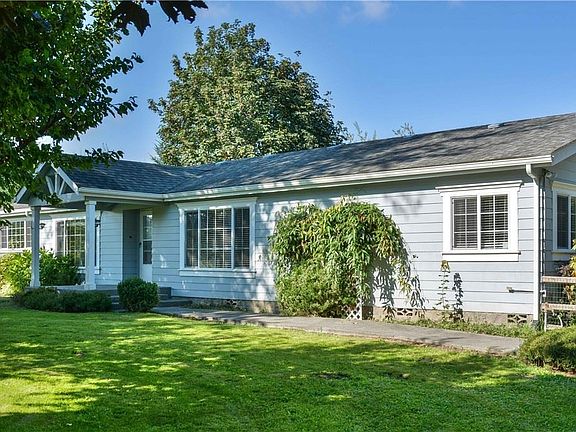 Absolutely LOVELY! One acre grounds are former Sunny Farms gardens with mature fruit trees, Marion & Raspberries. Craftsman style home boasting an open Great Room & kitchen with breakfast bar & loads of light. Master en-suite with 2 walk-in closets, soaking tub, shower and double vanity. Large DEN! South-facing sun room. Covered breezeway to detached 864 (approx.) garage/shop/RV pkg. Additional outbuildings. Area of nice homes. Close-in country living at its finest!