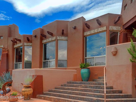 Amazing Price Reduction. Absolutely Stunning. If you don't mind a few stairs, the views are incredible. Be prepared to be impressed! This contemporary southwest style home is move-in ready and boasts 4 Bdrm. 2&1/2 BA with 3100+ sq.ft. of living space and is tucked away on a peaceful cul-de-sac. With it's open & inviting split floor plan, it offers both privacy & convenience. It is light & bright and open & airy. Every detail has been meticulously upgraded & maintained, ensuring a luxurious and comfortable living experience. Newer 2 heating/cooling systems, roof recently recoated, 29 panel solar system for low APS cost, stacked rock in living/dining room, 6 ceiling fans, 2 gas fireplaces & a large outdoor paver patio w/ a Kiva fireplace and Views galore. Too many upgrades to mention.