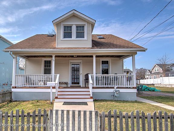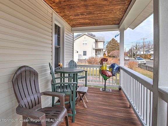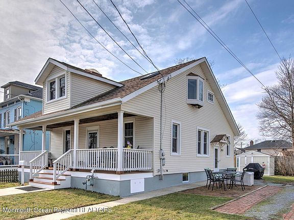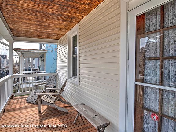 Welcome home to this great property in uptown section of Long Branch with plenty of room for the whole family with an extra large lot! You are greeted by a beautiful mahogany rocking chair front porch which takes you into the First floor cozy living room, dining room, kitchen with vaulted ceiling, SS appliances, JennAir cook top and a wood burning stove and a bedroom and bath. Second floor with master suite with full bath, bedroom and adjoining sitting room, 3rd bedroom and laundry room that was a bedroom. Basement offers plenty of room for storage. Outdoors offers a large detached garage, and storage sheds. patio for your entertaining and lets not forget the oversized lot which can be used for parking. expansion, pool and more!! Close to dining, beachfront, transportation & shopping