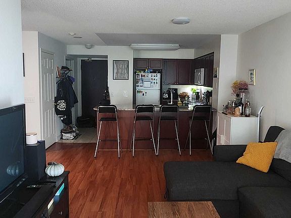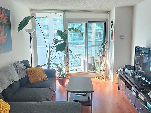 Welcome to Infinity Condos, where comfort and location come together in the heart of downtown Toronto. This spacious 1-bedroom plus den suite offers a functional open-concept layout with stylish laminate flooring throughout the living and dining areas. The den provides a flexible space that can serve as a home office, dining area, or reading nook, depending on your needs. The primary bedroom includes a built-in closet and offers direct access to a large private balcony, providing a peaceful outdoor escape with expansive city views. The unit will be professionally cleaned prior to move-in, ensuring a fresh and welcoming atmosphere. Enjoy the added convenience of one parking space, a storage locker, and all utilities included in the rent, including hydro. Located just minutes from Union Station, the PATH, and key downtown destinations, this suite places you within walking distance of the waterfront, Scotiabank Arena, restaurants, and the Financial District.