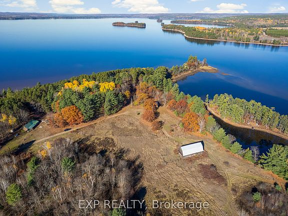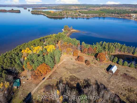 Opportunities like this don't come around often! Situated on one of Renfrew County's cleanest lakes, this exceptional 16-acre waterfront estate offers a rare blend of space, privacy, and natural beauty. With 493 feet of frontage in front of the original brick farmhouse and an additional western-facing branch leading to approximately 58 feet of pristine sandy shoreline, this property delivers some of the most stunning afternoon sun Round Lake has to offer. The existing two-storey brick farmhouse exudes character and timeless charm, ready for the right buyer to restore it to its former glory while adding their own modern touches. Accompanying the home is a large barn, full of potential for storage, hobby farming, or creative redevelopment. Round Lake is celebrated for its crystal-clear waters, excellent boating, and fantastic fishing. Spend your days exploring the lake from Foy's Beach, Bonnechere Provincial Park, or the public boat launch providing access to Round Lake Centre - all just minutes away by boat. Conveniently located only minutes to Killaloe, 40 minutes to Pembroke, and 1.5 hours to Ottawa, this property offers the perfect balance between tranquil waterfront living and accessibility to major centres. Whether you're looking to restore a classic farmhouse, build your dream lakefront retreat, or invest in a one-of-a-kind property, this Round Lake estate is a true gem waiting to be discovered.