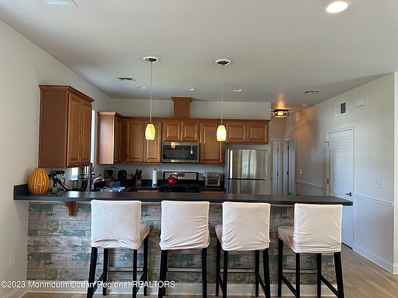 Rare find on Gravelly Point Rd. Finally an annual rental that offers comfort, modern amenities and access to a private beach with stunning views of Sandy Hook, the Manhattan skyline, and the Verrazano-Narrows Bridge too!. Savor coffee on the front porch, cook in the updated kitchen, enjoy meals at the breakfast counter or relax in the open floor plan living area too! Featuring 2 bedrooms, 1.5 baths, new hardwood flooring, a full laundry room and a generous sized garage with an EV charging station this is a place to call home. Steps from the Hudson Trail, Pompamora Point Beach, a new pickle ball court and dog park too! Easy commute to NYC via Sea Streak Fast Ferry. This home also enjoys the close proximity to boating, great restaurants and nightlife too!