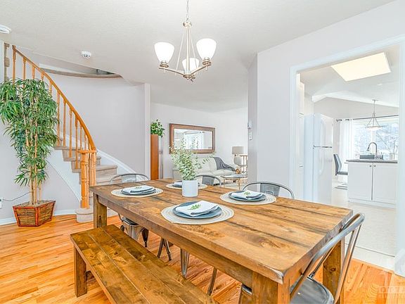 Offer received, presenting the offer today Mar 27th@6:30pm. Welcome Home to this bright 3 bdrm, 2.5 Bath End unit townhome located in Beaverbrook Kanata. NEW FURNACE and AC. The main level features large dining room perfect for hosting large family dinners, grand staircase, gleaming hardwood floors, updated lighting and large windows filling the home with natural light (gas stove rough in). Upstairs features Primary bedroom with private ensuite and walk-in closet, two secondary bedrooms and second full bathroom. This property boasts natural light throughout, yes even in the basement. The finished basement offers a cozy family room with gas fireplace perfect to cozy up to in the winter. Backyard features newer stairs, interlock patio and mature trees offering both privacy and shade. Conveniently located near Kanata centrum, Tech-nata, golf courses, full park with play structure across the street, highway access and more. Come explore the neighbourhood to see the endless convenience! 2023-03-27