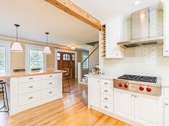 Welcome to your dream home where every room captures peek-a-boo water views, creating a serene Seacoast atmosphere. Meticulously renovated and expanded in 2018, this property offers convenience, privacy, and scenic views. The heart of the home is the chef's kitchen, equipped with a top-of-the-line Wolf appliance package, perfect for culinary enthusiasts and casual cooks alike. The dining room, with a cozy wood-burning fireplace, and the grand living area, anchored by a floating stone fireplace, are ideal for gatherings. The living area features built-ins, a coffered ceiling, and radiant heated floors. A sitting room adjacent to the fireplace offers built-in storage, bench seating, cove lighting, and sliding doors to a covered patio. Featuring a shiplap ceiling and cove lighting, this outdoor space is perfect for relaxation and entertaining. The luxurious primary suite boasts a shiplap cathedral ceiling, his and her walk-in closets, with an en-suite primary bath featuring a marble-adorned vanity with double sinks, an oversized tiled shower, and a jetted Bain Ultra soaking tub. Outside the primary, a versatile sitting room offers flexibility as an office, hobby space, or potential fourth bedroom. This home blends modern luxury with timeless elegance, making it a perfect coastal retreat moments from downtown Portsmouth. Agent interest.