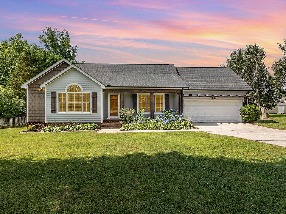 You'll feel at home as soon as you cross the threshold of this captivating 3-bedroom, 2-bathroom ranch. Reflecting sunbeams of natural light, Oak hardwoods exude a legacy feel in the living areas. In the neutral coloring throughout, your inner stylist will find the inspiration of a blank canvas. Ceiling styles that draw the eye's attention include vaulted and minimalist flat. The efficient gas fireplace will be the heartbeat of many beautiful stone hearth gatherings. The kitchen is a delightful arrangement of granite counters and major appliances, ready to follow your culinary directions. Natural light lends warmth to the room. The ensuite primary bedroom is a great recharging station for the day. In addition to the convenience of the private bathroom (walk-in shower), you will find ample closet space to let your wardrobe breathe. The beautiful bay window is a bonus. The additional 2 bedrooms are ready for guests or residents, and for your decorative touch. The large yard is attractively landscaped. A driveway with ample vehicle accommodation leads to an attached two-car garage that is available for its original purpose or for use as additional flex space. Facing the street, a breezy porch is a structural greeting to passers-by and a nice spot for relaxing with family or neighbors. On the deck, which is crafted of wood, the grill, cooler, and household chef make for a natural trio. The fire pit is ideal for roasting marshmallows with friends. This beautiul dwelling is a special charmer in the Woodlake development. This one is the right place at the right time for you.