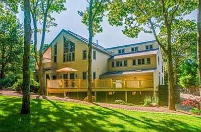 Masterfully constructed New Seabury Home for Sale. Property contains numerous custom features, to many to mention here, Must be seen to appreciate. Enter the double oak doors and be welcomed by an eloquent custom-built, oak spiral staircase. This staircase is centered in the morning room and is accompanied by a gas fireplace, access to the deck and custom stone patio. The open custom floor plan features a 32' stone wall, Cathedral ceilings, pier gas fireplace, spacious step-down family room. The Gourmet kitchen is completely customized, spiral pillars, soffit, and trim. A unique three-level customized island and bar is the centerpiece of this room. Pass through to the dining room, and computer station. Exquisite master bedroom with fireplace 3-car garage, exercise room, and spacious home office complete this very special home