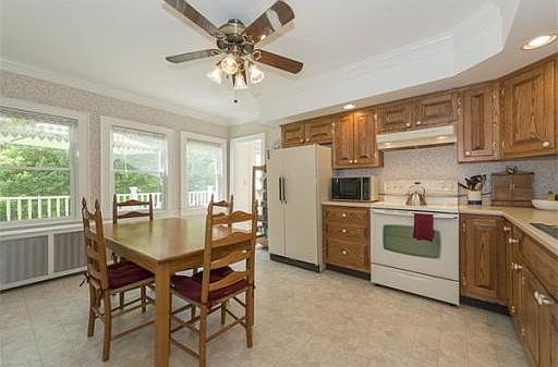 Wonderful Farmhouse Col in move in condition with a flexible floor plan. Set back from the road w/parking for everyone. Separate guest suite over 3 car gar (perfect for home office, extended stay family/friends. studio/gym). 16 rms, 7 beds, 4 baths & attached 3 car gar with workshop space. Warm & inviting. Each unit has f/p liv rms w/built in bookcases, formal din rms w/corner cabinets & eat-in kitchens. High ceilings & private laundry (washer/dryers included). Covered front porch, 2nd fl deck.