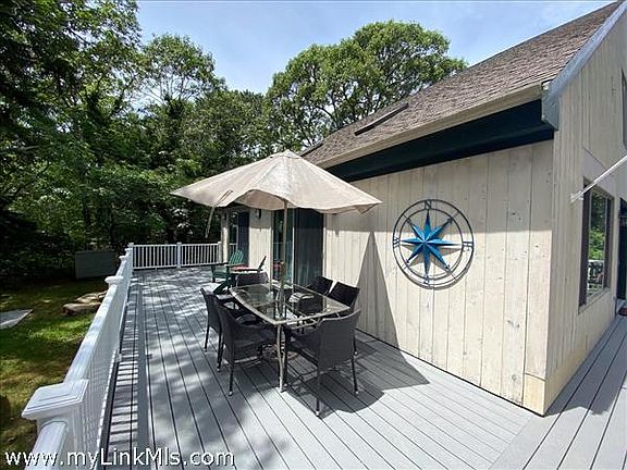 Located near the end of a dead-end street a few blocks from the Triangle in Edgartown. This well-maintained Saltbox style house boasts an open floor plan with 2 bedrooms and 2 bathrooms on half acre treed lot. As you enter the house, the open floor plan with a vaulted ceiling greets visitors with a large entertaining area where you and your guests can begin to make your own memories. There are two sliding doors with access to the wrap around deck. The kitchen has substantial island that offers additional seating next to the dining area which already seats 8. For the chef in all of us, the kitchen has granite counter tops and newer stainless-steel appliances. A comfortable-sized bedroom, den/office and a full bathroom round out the downstairs. Going upstairs, there is an open loft area ideal for a second living/TV area. There is a second full bathroom and large bedroom with 3 windows that overlook the back yard. The house has central air conditioning and is fully winterized with forced hot-air heat. The basement is unfinished but is ready to be converted into the living space of your dreams. Access to the outside is through a French Door that provides light into the area. House being offered as a turn-key property. Furnishings included with the exception of a few personal items. Can begin showing Sunday, August 29.
