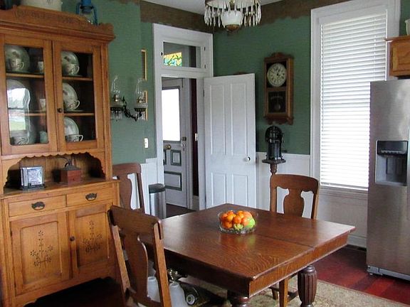 ENJOY THE BEST OF YESTERYEAR TODAY! This lovely home with a brick sidewalk, four fireplaces, two covered porches, and a new side deck was built in the 1800s. In the kitchen, all wallpaper and border were removed, walls were patched, sanded and freshly painted. The kitchen cabinets were also prepped and painted. New lights over the table and above the sink. Ceramic tile flooring that resembles hardwood floors were also installed.