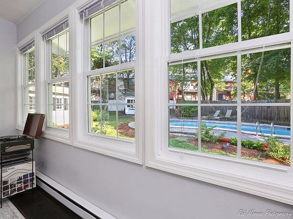 Updated (2007) 2 bdrm, 1 bath townhouse close to both public transportation (bus 136 & 137) & the commuter line. First floor has a kitchen w/ maple cabinets, stainless steel appliance & hardwood floors; living room with hardwood floors & dining room w/ sliders leading to heated 4 season porch. Second floor has 2 bedrooms each with closet space & hardwood floors; full bath with tiled shower & tub. Washer, dryer & refrigerator included, Forced air heating (Oil), 100 amp C/B, 2 car parking, private fenced in yard with inground pool & shed, plenty of outdoor space for entertaining. No pets over 40# (Exemption available, see condo docs). No condo fee, all expenses split 50/50. Only minutes to charming downtown Wakefield with its shops, restaurants and other amenities. Enjoy walking, biking, fishing, sailing, kayaking, paddle boarding & pedal boats on/around Lake Quannapowitt. Buy fresh veggies, fruit, bakes goods and more at the Wakefield Farmers Market