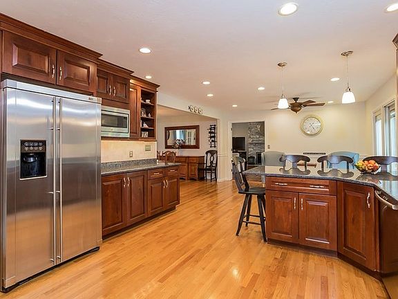 Private Retreat in HAMPSTEAD OF MARSHFIELD HILLS! Commuting to Boston? - Approx. 2Miles to Highway or Commuter Rail. MBTA Trains and Hingham Commuter Boat Nearby. This Classic Colonial Is Perched On It's Own Beautifully Landscaped Hill With A Heated Gunite Pool And Waterfall That Is Separately Fenced - Leaving Plenty Of Grassy Areas For Recreation. The Kitchen Is A Chef's Dream With Custom Cabinetry, Recessed Lighting, Granite Counters, And Stainless Appliances, Including 48" Gas Professional Six Burner/Grill Range. Open Floor Plan Dining Room, Kitchen, And Dramatic Marble Fireplaced Family Room With Cherry Floor Is Perfect For Entertaining. Living Room With French Doors Offers Privacy - Great Possibility For Home Office. Spacious Master Suite With Updated Bath Featuring Tiled Shower, Jetted Tub, And Radiant Heat. Lower Level Exercise Room With Sauna, Game Room. Replacement Windows And New High-Efficiency Heating System Add Extra Value To This Impeccably Maintained Mini Estate!