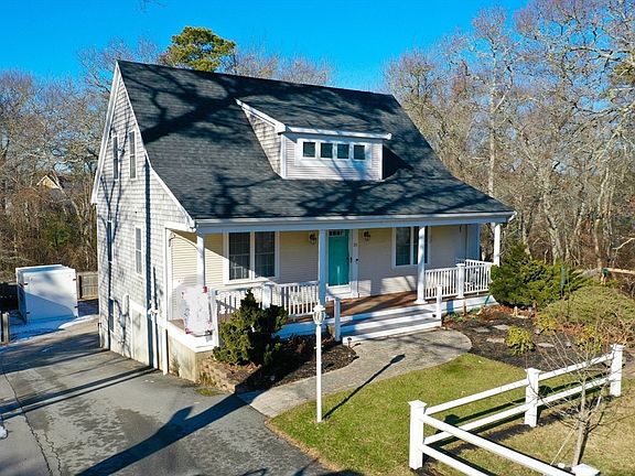 A short stroll from the beach-like shores of Big Sandy Pond down Harmony Lane, sits this 3 bedroom 2 3/4 bath Cape style home. Enter from your farmers porch to the first floor which features a living room area, laundry utilities, one full bath, and an open concept kitchen dining area with two sliding glass doors to access your large deck, where you can enjoy seasonal views of Big Sandy Pond. The primary and secondary bedrooms are on the second floor along with a shared full bath. The walk out basement level features 1 bedroom and a 3/4 bath with a separate seating area, 1 car garage, and the rear entrance. The rear portion of the lot has been filled with crushed stone to provide parking spaces of 4+.