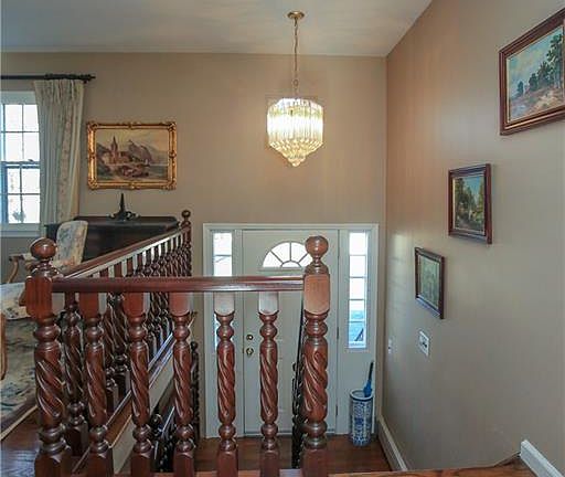 Beautifully maintained home features spacious living room with brick fire place, formal dining room with sliding door to deck and yard. Large eat in kitchen. Spacious master suite with lavatory. 2 additional bedrooms complete the 1st floor. Cozy family room on lower level with brick fireplace. 4th bedroom, laundry room/lavatory and 2 car garage complete the lower level. Door from the lower level leads to the lovey yard. Roof redone within 10 years (only 1 layer) Furnace approximately 2007. Newer Driveway and newer inviting front steps.