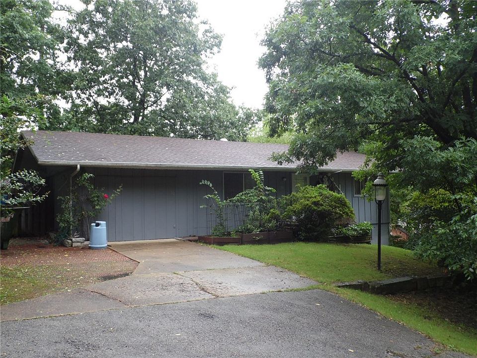 Quiet area of Eureka Springs. Trees and landscaping add to privacy of property. Needs TLC, but the back yard has landscaping, garden pool and patio. Garage has been converted to workshop. Walkout basement has tons of room with storage galore, shelving and cabinets and 1/2 bath. Cute kitchen and dining area has doors opening onto patio area. Cleanup on going, but this one has a lot of potential.