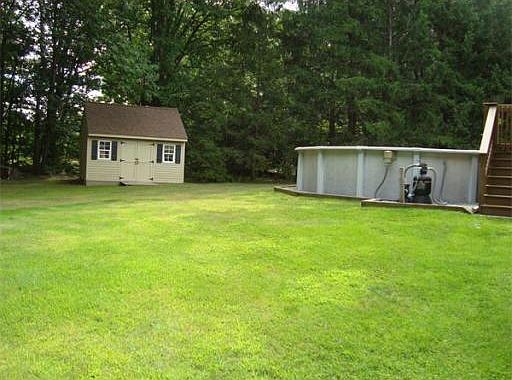 Pride of ownership shows in this 3 bedroom ranch. Farmers porch with recessed lights. Fireplace living room with picture window and hardwoods. Appliance kitchen with custom cabs and solid counter tops. Nice hardwoods through out the upstairs. Slider leads from dining room to screened porch, deck and pool. Finished basement has a fireplace family room,full bath and laundry room and plenty of storage. One car garage under and separate workshop. New roof, shed, newer windows, pool. Nicely landscaped lot. Just move in and relax!! Great highway access yet quiet country setting.