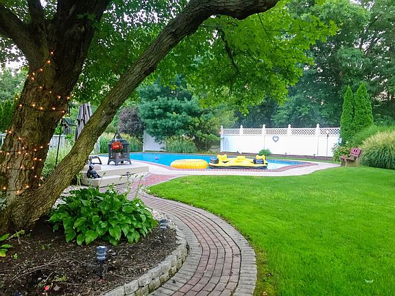 4 bedroom 3 1/2 bath Large kitchen island and breakfast area Dining room Study Family room with fireplace Laundry/ mud room off single garage In ground pool heated Brick and stone walk ways 3 tiered deck Fenced back yard Garden 2 storage sheds I attached garage Large driveway Air conditioner whole house Water softener Zone heating