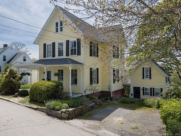 Location, location, location!!! Located in the historic village of Noank, CT, at the mouth of the Mystic River, you will enjoy beautiful sunrises and sunsets from this 1894 Victorian that also comes with a shared dock and property. Perched well above the water overlooking West Cove, the house has fantastic views of Fisher's Island and Long Island Sound. This home has many original features with a new roof and freshly painted exterior. Three bedrooms on the 2nd floor and a finished attic with one bedroom give plenty of room for family and guests. There are pocket doors between the living & dining room in case you want a first floor Master bedroom. Attached to the back deck is an upper entrance to a "Fisherman's Cottage", an original two story small fisherman's house that can serve as office, art studio, guest rooms or a private getaway for your meditation or yoga! This property is your chance to "Live your dream" of an ocean view home with private access just below the house to a shared waterfront lot with pier, picnic area and small boat dockage. The best location on the Connecticut Coast!