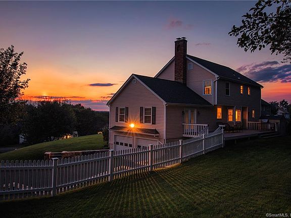 Enjoy spectacular sunset views from this attractive 8+ room, 3 bedroom, 2.5 bath colonial boasting many quality updates & nestled on a lovely .56 acre fenced-in backyard on a cul-de-sac street. The main level has a welcoming entry foyer; a formal dining room; a front to back living room; a gorgeous new Chef's kitchen in 2014 custom maple cabinetry, Corian countertops, SS appliances, & a spacious dining area; a dramatic 21.5 x 22 family room floor to ceiling brick fireplace; cathedral ceiling, & Pella French doors to deck; a tastefully updated half bath, & main level laundry. A master BR walk-in closet, a remodeled master bath cherry vanity Corian countertop & tiled shower stall, two additional BR's walk-in closets, & a main bath Corian countertops & double sinks & a soaking tub shower & tile surround. The LL has an additional 400 SF of living space separate heating zone & an unfinished area offering plenty of storage space. Decorative moldings, hardwood floors, central air, newer bay & thermo-pane tilt-out windows, & a new boiler in 2009 add to appeal. The exterior was painted in the Summer of 2017 & is enhanced with a 13 x 40 ground level deck Timber Tech decking & hand rails, an architectural roof, & handsome stone walls. Close to charming town green, new state of the art library, schools, shopping, & recreation areas including Great Hollow Lake & Wolfe Park (swimming pool, ball fields, walking trails, bike trails, & playground. Wow