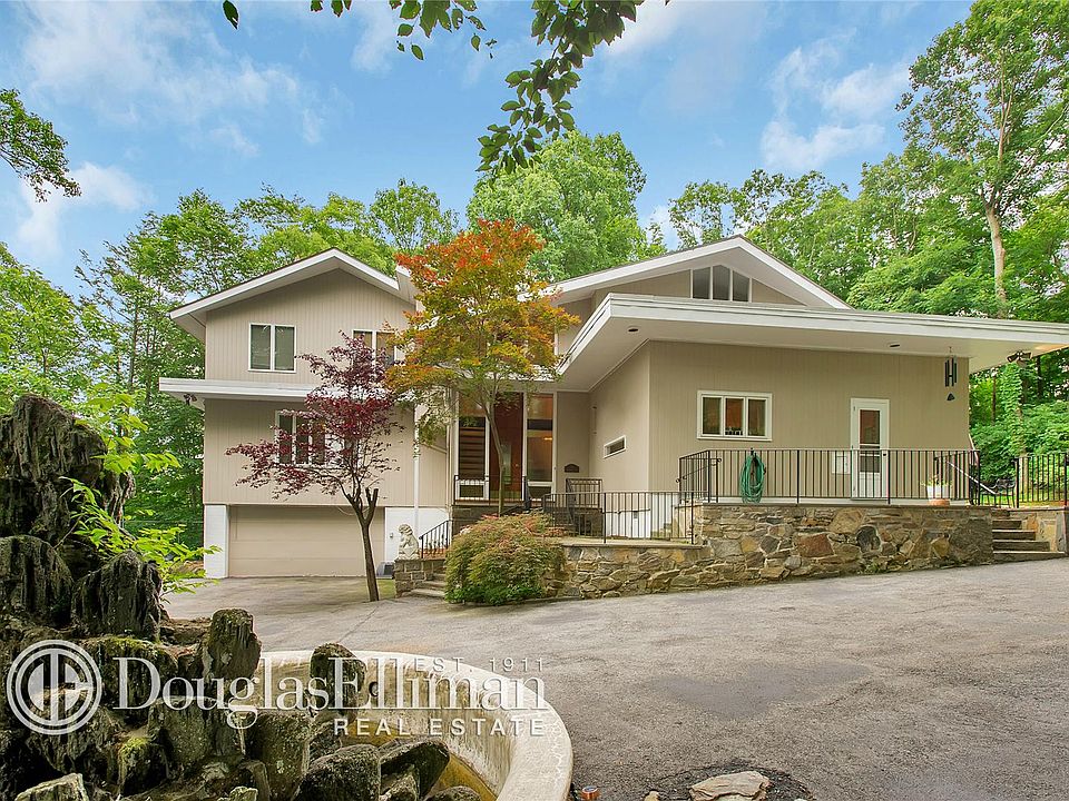 A contemporary home sits atop a hill with privacy and serene surrounding. The double height entry leads one into an inviting livingroom with a fireplace,large windows and a formal dining area. The modern eat in kitchen is the heart of this home which is ideal for entertaining family and friends. (Not to mention the wrap around deck area for BBQ and simply unwinding outdoor!) The separation of bedrooms on the west and east wing makes it easier for guests, home office or a configuration to fit all your need! The commute to NYC from Hartsdale station is an enviable 30 minutes, and the luxury of close proximity to schools, shops and restaurants is added bonus for your busy lifestyle .