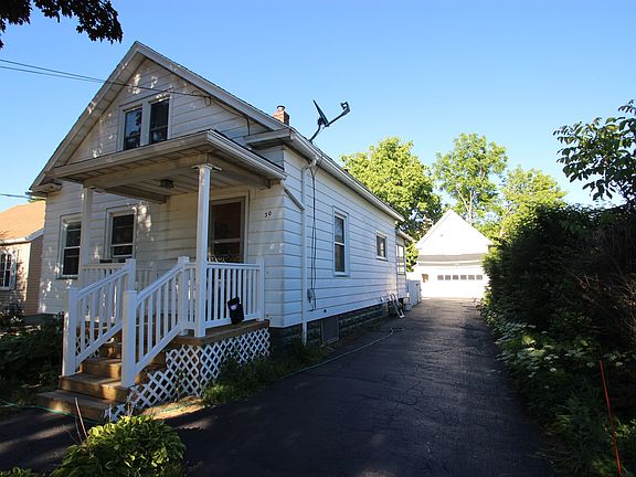 Bigger than it looks! Large EIK w/ oak cabinetry & a lot of counter space, 1st floor bedroom and full bath, possible office on 1st floor currently being used as a laundry room, new laminate wood flooring, 3 season back porch, 2 additional bedrooms upstairs. Roof 2013, new front porch w/ vinyl railings. Nice size fenced backyard w/ detached 1.5 car garage.