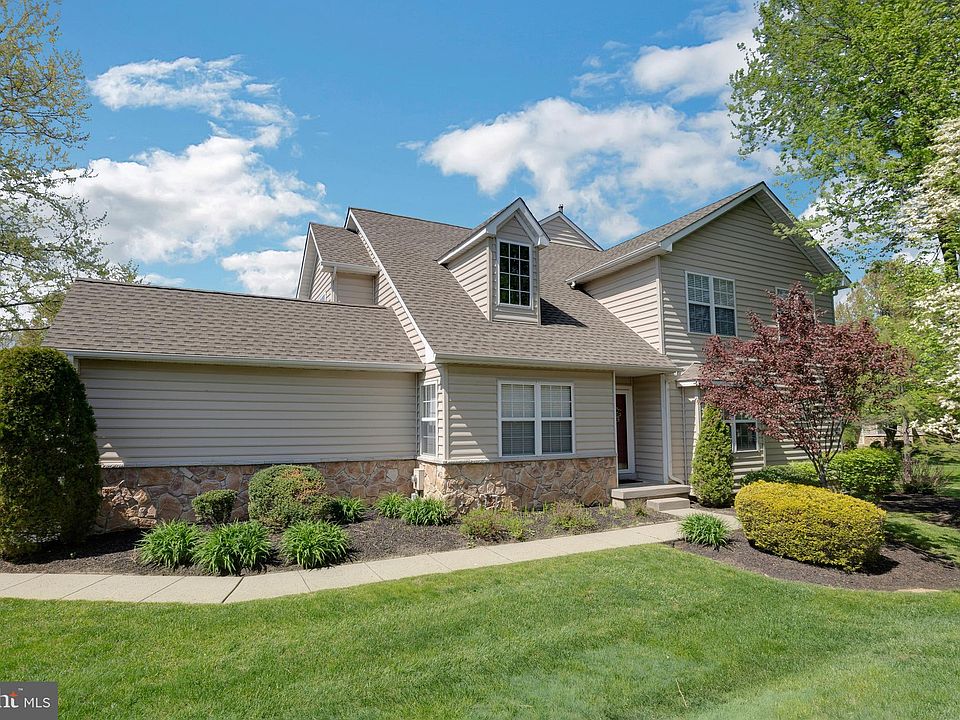 Casual elegance exudes throughout this pristine two-story townhome. Situated in a highly desirable, and centrally located Laurel Creek townhome community in Moorestown, this 3 BR, 2/1 BTH end unit emulates the square footage and feel of a single family home. Impeccably maintained and painted in a neutral Benjamin Moore palette, the open and spacious floor plan opens with a two-story Foyer flanked by the Living Room with vaulted ceiling and elegant Dining Room with chair rail moldings. Gleaming hardwood flooring throughout the main level leads to the inviting Family Room featuring a gas fireplace with marble surround and newer Pella sliding door to the rear patio. Adjacent is the gourmet Kitchen with greenhouse expansion, ample white cabinetry, tile flooring & backsplash, GE Profile stainless steel appliances including 5 burner gas range with warming drawer, granite countertops and sunlit breakfast area with skylight. The upgraded Powder Room and Laundry/Mud Room complete the main level. The Upper Level offers an expansive Owner's Suite with cathedral ceiling, linen closet, walk-in closet and beautiful ensuite bath. The frameless stall shower with custom tilework, dual shower heads, built-in shelf and bench, upgraded double sink wood vanity, soaking tub, and skylight create a sun-filled luxe space to get ready for your day. Two additional generous sized bedrooms share an upgraded hall bath and linen closet. A fabulous finished Lower Level provides the additional living area needed for fitness, a play room, or work space, plus there's storage for holiday decorations and more. Relax on the rear patio in a tranquil setting surrounded by mature trees and manicured lawn. Additional amenities include customized closet systems in all bedrooms, recessed lighting, designer fixtures, including Hinkley lighting, Hunter Douglas window treatments, and Minka Aire ceiling fans. You will have peace of mind with the newer HVAC (2018), hot water heater (2016), renovated baths with Kohler toilets, roof (2016), patio stairs and railing (2020), sump pump (2017), Pella storm and sliding doors (2017), plus a security system, irrigation system, and favorable 2 car garage. Living is easy with the HOA maintaining the lawn and snow removal. A short walk away is the community pool to relax at this coming summer, tennis court, and tot lot to enjoy. Minutes away are major access routes, shopping centers, restaurants, Moorestown's charming downtown, excellent schools & more!