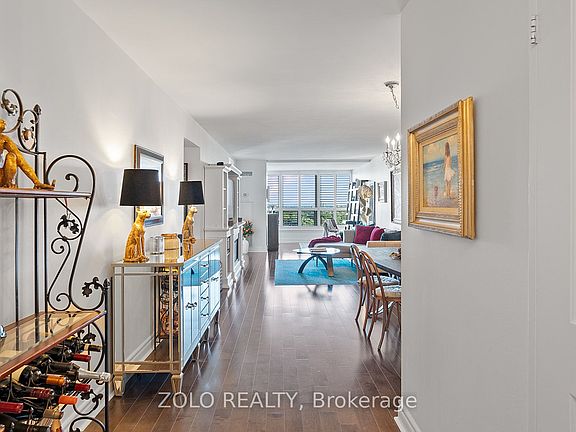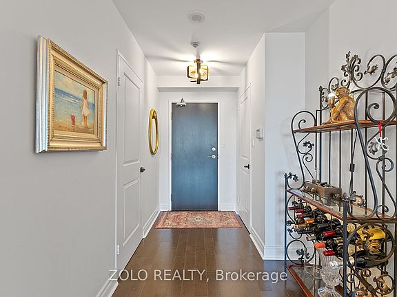 Sub-Penthouse perfection at 30 Holly - a Menkes-built boutique with only 6 suites/floor. Rare and premium "01" unit. 1,269 sq ft 2-bed plus den, 2-bath showcases panoramic south/east treetop & lake views the moment you walk in, with two walkouts to a 100 sq ft private balcony overlooking the park. A complete, thoughtful refresh: engineered hardwood throughout; marble flooring primary bath; ceramic tile guest bath; kitchen & both baths renovated with quartzite counters, marble backsplash, new appliances (kitchen + laundry) and a renovated laundry room (cabinetry + counters). Popcorn ceilings removed, new baseboards/trim, new interior doors & hardware, custom blinds, painted top-to-bottom. A/C units replaced (2019). All suite window glass replaced (2022 by the corporation). Building upgrades include new plumbing supply lines and refreshed lobby, corridors, lighting, suite doors & party room (gym/annex slated for updating) 24 Hour Concierge.***ALL UTILITIES PLUS VIP BUNDLE CABLE AND INTERNET, INCLUDED IN MAINTENANCE FEES*** for predictable costs. Parking near the elevator + abundant visitor parking. Quiet street, rear-access to Eglinton subway, future LRT moments away, 99-style walkability to shops/dining/grocers and access to coveted schools.