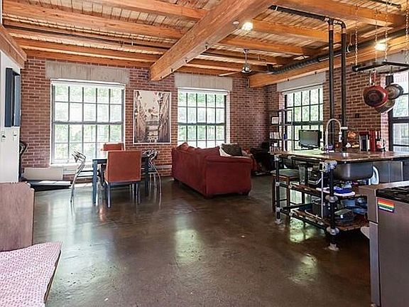 Built in the early 2000's with a commitment to green living, this one bedroom residence offers a rare opportunity to live in the Davis Square Lofts. An exclusive use patio is just outside the entrance to this open concept space. Exposed brick, ductwork and wood beams harken back to the days when this area was home to a mill. The industrial feel is further enhanced by the kitchen shelving and island, built from pipe and fittings, as well as the commercial grade, energy efficient appliances. The oversized windows are in the style of the original factory space and offer passive cooling, reducing the need for air conditioning while the concrete floors contain solar powered radiant heat. The bedroom is generous & could easily accommodate a king sized bed. One garage parking space included! Directly adjacent to the Minute Man bike path, minutes from the Davis T stop and the shops and restaurants of Davis Square, this unit is the perfect place to call home. First showings at the open houses.