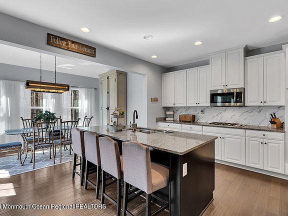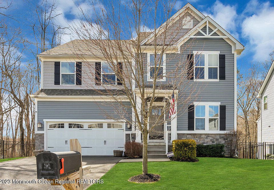 Welcome home to this meticulously maintained 2016 colonial in charming Farmingdale. The main level boasts an open floor plan perfect for entertaining with an oversized kitchen island, granite countertops, and stainless steel appliances. The kitchen overlooks, and is open to, the family room with custom built-in shelving on either side of a gas fireplace and a bright, sunny, breakfast area with access to your deck. Towards the front of the house there's an office with french doors and a formal dining room. Throughout the main level, you will find beautiful hardwood floors, moldings, smart lights, speakers, and more...too much to list! Downstairs, a finished walkout basement with plenty of storage space leads to your backyard retreat with a new paver patio, firepit, hot tub, and swingset. O On the second floor the primary bedroom with tray ceilings features a newly updated ensuite bathroom, a large walk-in closet, and a large second closet for all of your storage needs.You'll also find the laundry room conveniently located upstairs making laundry a breeze. The best part is the family-friendly neighborhood with a short walk to the elementary school. Nothing to do but unpack! Come fall in love with this beautiful home and neighborhood.