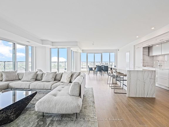 Explore sophisticated urban living in this newly built 3-bedroom, 3-bathroom, 2100 square foot (apprx) executive suite with 1 parking in one of the most luxurious developments in the city (*unfurnished option*)! Ideal location, Auberge on the Park is Surrounded by Toronto's most exclusive North York neighbourhoods! Boasting a luxurious art deco design & essential amenities this residence promises a distinctive blend of class, comfort & convenience. This sunlit corner suite boasts an array of floor-to-ceiling windows providing an abundance of natural light & breathtaking southeast views of the Toronto Skyline. Experience luxury living in this thoughtfully designed condo featuring an open-concept floor plan, seamlessly blending the living, dining, & kitchen areas, perfect for both entertaining & daily living. The flow continues outdoors with 2 oversized terraces (approx 700 sq ft) overlooking Toronto, offering exceptional exterior living spaces. The chef's kitchen features high-end Miele appliances, an oversized island with a quartz waterfall feature & counter top, breakfast seating, custom quartz backsplash & ample cabinetry. Enjoy 3 spacious bedrooms, including a primary suite with a 5-piece ensuite, large walk-in closet and a double closet with stunning south views, while the 2 additional bedrooms, each with their own walk-in closet & picturesque east views, are thoughtfully situated on the opposite side of the unit for added privacy. Additional features include: 9ft ceilings, luxury hardwood floors throughout; an ensuite laundry room, ample storage space & pot lights. Enjoy seamless access to the LRT, Shops at Don Mills, restaurants, big box stores & parks. Seize this incredible opportunity to make Auberge on the Park your home! Outstanding resort like amenities featuring an outdoor pool, cabanas, whirlpool spa, rooftop garden/terrace w/ bbq area; state of the art gym w/yoga & spin studios; lounge area; party rm; private dining rm; 24 hr concierge & pet area.