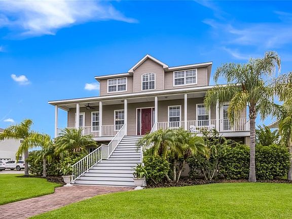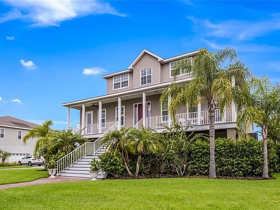 Live the island life in this luxurious, Key West Inspired home! Located on the historic Terra Ciea Island, this exquisite property is nestled on a lovely street in a maintenance free, waterfront community. Constructed with beautiful interior details, find stunning hardwood floors, tray ceilings, & crown molding paired with welcoming, light-filed spaces. As you approach, an expansive front porch boasts views of Terra Ceia Bay. Sip a cool drink & relax while taking in the beautiful scenery. Elegant yet comfortable, the main living room showcases sliding doors leading out the back deck and beautiful views of the yard beyond. Prepare a meal with ease in the gorgeous chef's kitchen, which includes new stainless-steel appliances, 42" cabinets, granite countertops, great walk-in pantry and four-person breakfast bar. Off the kitchen, an exquisite formal dining room is perfect for entertaining. Sleep well in the very spacious main floor master suite with spacious closets and beautiful ensuite bath which includes a jetted soaking tub, walk-in shower and dual vanities. Upstairs, find three additional bedrooms and a great loft--ideal as a playroom or den. Storage galore ... spacious three car garage with attached storage/bonus room. Residents of this community enjoy a private boat dock, heated swimming pool, boat/RV storage & convenient location within a 20-30 minute drive to St. Pete and Tampa. Also, an Optional (VIA) Association offers events, park, boat ramp & more for $150/yr.