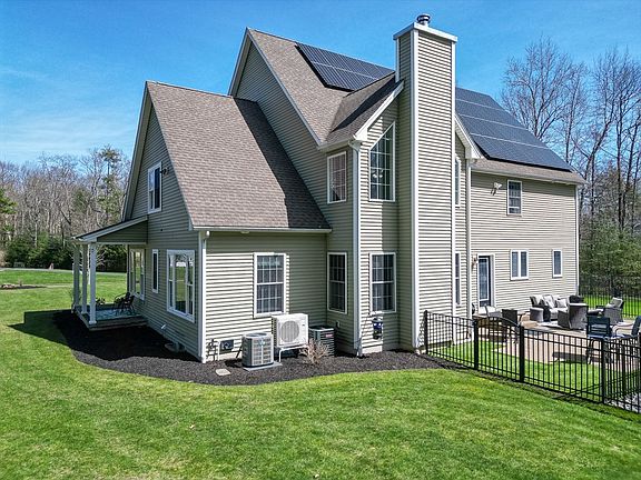 Absolutely Stunning Contemporary in Belchertown with everything you need done, done already for you. From the Exterior with new fenced in backyard and around the inground pool area, concrete patio, Astro turf side yard for the pets or kids to play in without the mess, fire pit area, this home has it all going on outside. Now for the best part, the Interior. Brazilian cherry flooring, stunning stone fireplace in massive living room with 24ft high cathedral ceilings. Open floor plan backs to the huge Kitchen with gorgeous kitchen island and tons of counter/cabinets space. French doors to the elegant dining room. First floor main bedroom with full bath, if you desire otherwise, or you'll find the glamorous main bedroom upstairs with Trey ceiling, huge main bath with Jacuzzi tub and marble floors and walk it closet. Loft overlooks living/kitchen area. Nearly 1200 sq ft of finished, open floor plan basement with a bar area, full bath, exercise room and hidden wine room/private storage.