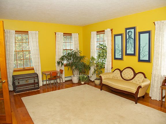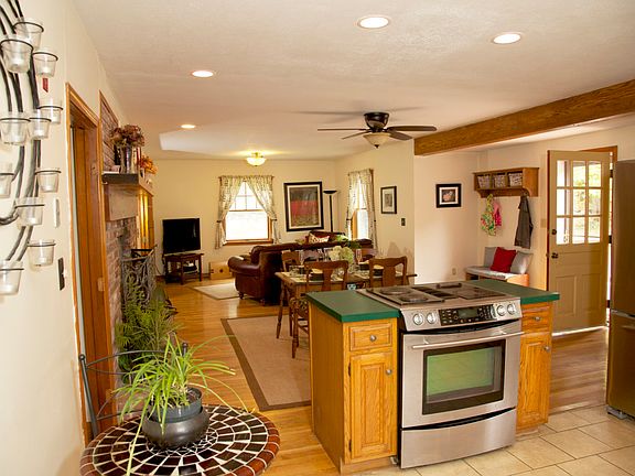 Custom Built Saltbox home on 3.55 acre country lot with stone walls. Great flow with open living/kitchen/dining area. First floor also includes nice size pantry in kitchen, office, family room, 2 fireplaces, and 1/2 bath. Second floor features 2 nice sized bedrooms that share a full bath. Master suite has walk-in closet as well as recently upgraded tiled bathroom. No carpet here, all hardwood and tile throughout. Well maintained home also has new deck, paved driveway, electric fence, newer heating system and septic. Exterior of home, trim, and deck have fresh paint. Plenty of room on this lot to add a 2 car garage!