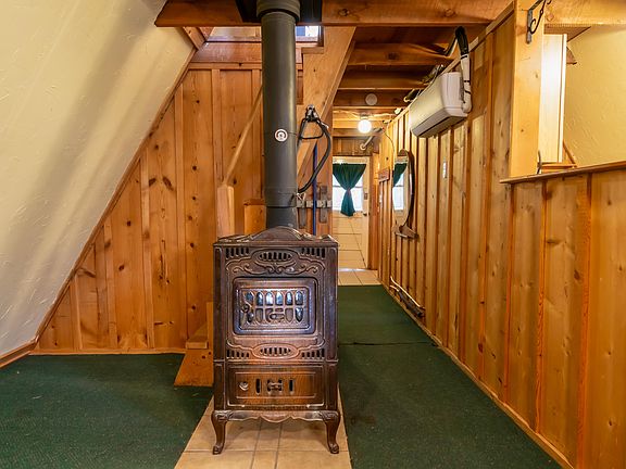 Talk about the perfect getaway at a great price! This cozy A-Frame nestled on a wooded lot in Area 2, just north of Jemez Springs, is a diamond in the rough with endless possibilities! Great potential for an investment property or add your own finishing touches and make it your go-to for weekend retreats. Double decker decks on the east and west gives you plenty of space to enjoy the views of the spectacular soaring mesa walls! There is a space for sleeping quarters downstairs or to use as sitting area. Functional Galley kitchen, a wood burning stove to keep things cozy in the living area, as well as a mini split system. Loft upstairs to use as a bedroom, or as a spot for guests. Bring vision and a hammer, the sky is the limit with this charmer!