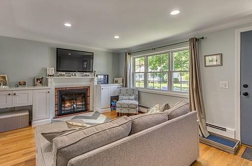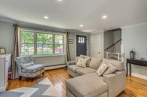 Move on in! This Wakefield Cape is a delight with its updated kitchen and bath, beautiful hardwood floors, custom built ins, and spacious yard and deck. Freshly painted interior in today's preferred colors, means you can just move in and not spend extra time making it look like the house you've imagined. The living room has hardwood floors, built-ins flanking the fireplace and a picture window. The kitchen is bigger than most Capes, thanks to the attached 9 x12 dining area. Two spacious bedrooms on the first floor plus a full bath make it easy to live on just the first floor, but upstairs you'll find two additional bedrooms (and space to possibly add a second bath, if desired). The finished basement is great space for a family room or playroom. The West Side neighborhood is convenient to the lake, highway, commuter rail and the best of downtown Wakefield. Updates in the past 3 years include the boiler, oil tank, hot water heater, and appliances.