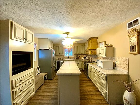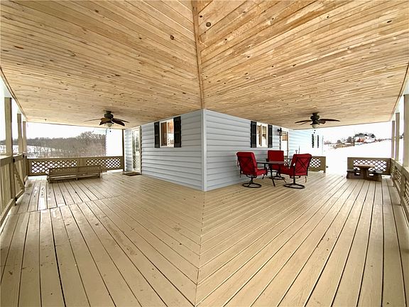 Nice roomy ranch with stylish kitchen, large center island and bar with stools. Stainless appliances. Living room with fireplace. Walk out to wrap around covered deck. Large bathroom, spacious closets in each of the 3 bedrooms.